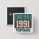 Badge with name and year wearer was born. Celebrating the Year of birth as 1991