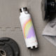 Moderne Aquarellfarben pastellfarbener Regenbogen in Farbtönen Wasserflasche personalisiert mit Ihrem Namen in trendorange handgeschriebener Signatur-Schrift Kalligrafie. ++++++++ Kann ein niedliches Sake-Geschenk für einen Geburtstag, Süß 16, Hochzeit oder Brautparty sein.