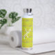Moderne Aquarellfarben pastellfarbene Regenbogenmuster Neon Limone Wasserflasche personalisiert mit Ihrem Namen in trendiger handgeschriebener Schriftzeichen-Kalligrafie. ++++++++ Kann ein niedliches Sake-Geschenk für einen Geburtstag, Süß 16, Hochzeit oder Brautparty sein.