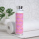 Moderne Aquarellfarben pastellfarbene Regenbogenmuster hellrosa Wasserflasche personalisiert mit Ihrem Namen in trendiger handgeschriebener Schriftzeichen-Kalligrafie. ++++++++ Kann ein niedliches Sake-Geschenk für einen Geburtstag, Süß 16, Hochzeit oder Brautparty sein.