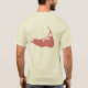 Die Aufmachung einer klassischen "Nantucket roten" Silhouette der Insel auf der Rückseite des Shirts und der Breite und der Länge koordiniert auf der Front in dem oberen links gerahmten durch das klassische weiße Zeichenbrett, das auf dem Kap und den Inseln von Neu-England allgemein ist.