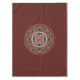 Ce mandala a été conçu pour le signe zodiaque Aries, représentant une pierre de jasper rouge au centre entourée d'éléments représentant le signe, comme le symbole du signe, la constellation, et le symbole alchimique pour le feu, ainsi que des vignes et des tissages en fibre qui l'enveloppent dans une image solide dans des tons de rouge, d'argent et de marron.