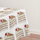 La nappe présente une illustration originale d'une tranche de gâteau à la voie du sud, un gâteau à la couche fait de noix de coco, de pacan et de cerises.