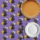 Un mignon petit chat noir avec un citrouille orange, chauve-souris, glands et une pleine lune sur fond de violet