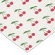 Une nappe avec un motif de cerises et ses feuilles verts sur un arrière - plan de couleur beige clair : un joli cadeau pour une famille qui vient de déménager ou pour votre décoration d'été !
