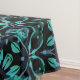 Bring vibrant, calming energy into your home with this eye-catching tablecloth. The design features an intricate mandala pattern with a mesmerizing radial symmetry in shades of turquoise and teal against a dark, nearly black background. The mandala design is made up of delicate floral motifs and flowing lines that radiate outward like petals, creating a sense of depth and motion.