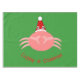 Cette incroyable nappe présente une drôle d'image graphique d'un crabe portant un chapeau santa. Le crabe est rose et a de grands yeux stupides sur des tiges et d'énormes griffes pincées. Un cadeau amusant pour tout le monde que Noël les fasse crabe ou pas