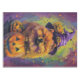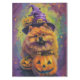 Embrassez l'esprit d'Halloween avec ce design enchanteur avec un chien mignon dans un casquette sorcier entouré de citrouilles sculptés. Parfait pour ajouter une touche de charme éffrayant à vos célébrations festives.