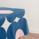 Cette nappe design présente un joli motif de fleurs géométriques rétro en bleu et rose.