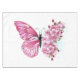 Flower arrangement of pink butterfly with rose Japanese cherry blossoms on white background.