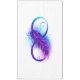 Infinity symbole with a beautiful feather painted in purple and blue bright colors on white background