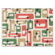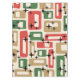 A festive mid-century composition featuring red, gold, and green rectangles scattered across a soft beige background, punctuated by crisp black starbursts. The geometric layout evokes vintage holiday wrapping paper and atomic-era ornamentation, blending bold shapes with twinkling accents. The palette channels cozy retro cheer, while the rhythmic repetition of forms adds a playful, celebratory energy—perfect for Christmas décor with nostalgic flair and graphic charm.