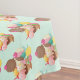Nappe avec un motif orienté horizontal. Un motif d'été avec un bol de crème glacée avec 3 succulentes boules couvertes de bonbons saupoudrés. Un cône glacé également avec 3 boulettes de chocolat, vanille et fraise. Un bol de desserts rempli de crème glacée au goût néopolite avec une délicieuse cerise sur le dessus.