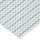 Ce tissu de table moderne est habillé d'un motif chevron tendance bleu, gris et blanc.