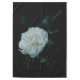 Une photo d'une seule rose blanche fleurit dans l'obscurité du feuillage des feuilles. Copyright ©2019 Kimberly J Tilley.