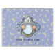 Vieux sorcier avec cape bleue et boule de cristal magique. Utilisez la photo du visage pour customiser. Texte personnalisé.