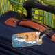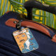 Eine Vintage Postkartenkarte von Narragansett Rhode Island, die auf einem Gepäckanhänger umgelegt wurde.