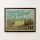 Diese Grüße aus Narragansett Vintage Postkarte Design verfügt über einen Sandstrand mit einem schönen türkisfarbenen Ozean Wasser und über dem Meer, einen blauen Himmel mit billigen weißen Wolken. Im Vintage Reisen Stil.