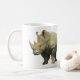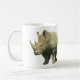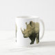 Großes afrikanisches Nashorn mit eindrucksvollen Hörnern auf Grau.
