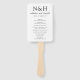 Moderner Hochzeitshandfan mit einfachem und minimalem Schwarzweiß-Design, mit einem Monogramm in einem kühlen Schriftart und Ihren Namen in einem eleganten Schriftsatz. Unten ist Ihre Reihenfolge der Zeremonie und der Rücken hat Ihre Hochzeitsfeier, "in liebevoller Erinnerung" Nachricht und danke Ihnen Nachricht.