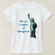 Leicht personifizieren Sie oder entfernen Sie den Text auf diesem Shirt, das ein Bild des Freiheitsstatuen kennzeichnet und liest: Wir sind eine Nation der Immigranten.