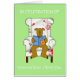 Ein niedlicher brauner Hund sitzt in einem Stuhl, der mit Kinnmaterial überzogen ist. Er liest ein Buch über eine Ingwer-Katze. Die Worte "In Feier des National Read a Book Day" begleiten das Bild.