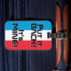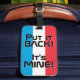 Die luxemburgische Nationalflagge Funny Patriotic Luggage Tag mit den luxemburgischen nationalen Flaggenfarben, die die Vorderseite des Tags bedecken. Witziger Text "Legen Sie es zurück! Es ist MINE" ist über die Flaggenfarben geschrieben. Der Text kann mit der Funktion "Anpassen!" vollständig angepasst werden. Die andere Seite des Tags ist für Ihre Informationen reserviert. Der luxemburgische Gepäcktag ist der perfekte Begleiter für Ihre Reisetasche und das schöne Geschenk für jeden Anlass. © CountriesOfTheWorld