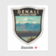 Denali Aquarell Kunstwerk Design. Der Park hat Terrain von Tundra, Fichtenwald und Gletscher, der Park ist Zuhause für Wildtiere inklusive Grizzlybären, Wölfe, Elche, Karibu und Dall Schafe.