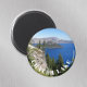 Runder, dekorativer Magnet mit einem landschaftlichen Foto-Image des saphir blauen Sees im Krater Lake National Park, Oregon. Wählen Sie Ihre Magnetgröße aus. Macht ein tolles Reise-Andenken!