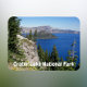 Ein 3 x 4 Zoll flexibler Magnet, der ein landschaftliches Foto-Image des saphir blauen Wassers und der Wizard Island im Crater Lake National Park im Pazifik Nord-West Staat von Oregon bietet. Macht ein tolles Reise-Andenken!