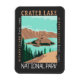 Kratersee Vektorgrafik Design. Der Park liegt in den Kaskaden-Bergen von Süd-Oregon. Bekannt ist er für seinen berühmten Kratersee, der durch den heute zusammengebrochenen Vulkan, den Monte Mazama, geformt wurde.