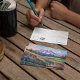 Diese Postkarte zeigt ein Aquarellbild des Mount Rainier Nationalparks in Washington.