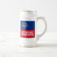 Celebrate Liechtenstein's National (Independence) Day with this striking August 15th beer stein, which features the brilliant blue and red hues plus the ducal hat of this European microstate's flag. Customize messaging as desired. Reverse shows identical design. Design © W.H. Sim. See more at zazzle.com/expressionsoccasions