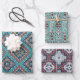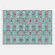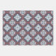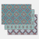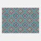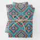 Dies ist ein Set aus drei Blättern Umhüllungspapier mit roten, aquamarinen, schwarzen, grauen, weißen und orangefarbenen Native Amerikanischen Ureinwohner Navajo geometrischen Mustern.