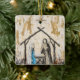 Krippe mit meiner Originalkunst, die mit der Geburt Jesu Christi auf einem Keramik-Platz-Ornament darstellt.