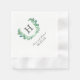 Gewohnte Napkins mit natürlichen Lorbeeren im Aquarellstil. Personalisieren Sie Ihre Monografie, Namen und Datum.
