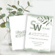 This minimalist wedding stationery set features a nature-inspired botanical leafy design with delicate watercolor foliage in serene shades of soft green and white. Perfect for simple wedding celebrations, this elegant invitation showcases natural leaf patterns that exude calm, timeless charm, and organic beauty. The front highlights the couple’s initials surrounded by lush leaves, while the back includes a minimalist leafy banner — an elegant space to personalize with your own wedding details or names. Ideal for eco-lovers and those who cherish clean, natural aesthetics, this simple greenery wedding invitation balances sophistication with earthy grace.