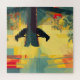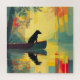 A black Labrador sitting peacefully in a canoe, surrounded by a warm, glowing landscape.