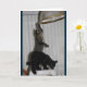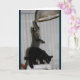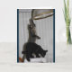 Diese lustige Geburtstagskarte enthält ein graues gestreiftes Kitty namens Caspian und ein schwarzes Kitty namens Mauser. Es zeigt, wie diese beiden seltsamen Kätzchen in Unfug geraten. Mauser krabbelt über einen Katzenträger, der auf den Esszimmertisch gelegt worden war. Kaspisch ist oben auf dem Katzenhalter und stehend auf ihren Hinterfüßen, die auf die von der Decke hängende Esszimmer-Lampe zugehen und sie herunterziehen. Eine lustige Geburtstagskarte, die sagt: "Tu nichts, was deine Katze nicht tun würde! Alles Gute zum Geburtstag."