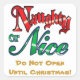 Dies ist ein niedlicher Begrüßungsticker für den Urlaub! In fett, glänzend rot und grün steht dort "Naughty oder Nice" und unten in Gold heißt es: "Nicht bis Weihnachten öffnen!"