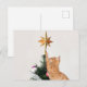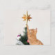 Katzenjunges Orangengeschirr hat den Weihnachtsbaum erklettert und sucht den niedlichen Katzenliebhaber Weihnachtsfeiertag auf der Postkarte