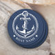 Nautic Anchor Logo Navy Blue Boat Name Runder Pappuntersetzer
