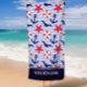 Nautic Anchor Navy Blue White Stripes Strandtuch