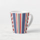 Stilvolle Tasse aus dem Wassersport. Kühne Seglerstreifen in Rot, Weiß, Blau, Beige und Grau.