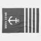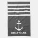 Custom Nautical Classic Anker mit Ihrem Personalisierten Bootsnamen auf einem stilvollen grauen Küchentuch mit weißen Streifen.