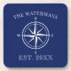Nautic Compass Rose Family Name Navy Blue Getränkeuntersetzer