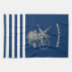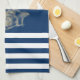 Nautic, Gold Seashells Navy Blue Stripes Geschirrtuch