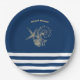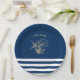 Nautic, Gold Seashells Navy Blue Stripes Pappteller