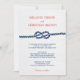 Diese moderne Hochzeitseinladung eignet sich ideal für eine Hochzeit mit einem Thema für Wassersport, Ozean oder Strand. Es verfügt über einen Wasserknoten in der Mitte mit einer hellen, weißen Holzstruktur im Hintergrund. Die Farbe Rot und Blau ergänzt das Wassersportzentrum.