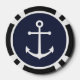 Moderne Minimalistische Nautical Poker Chips mit weißem Anker auf marineblau Hintergrund.